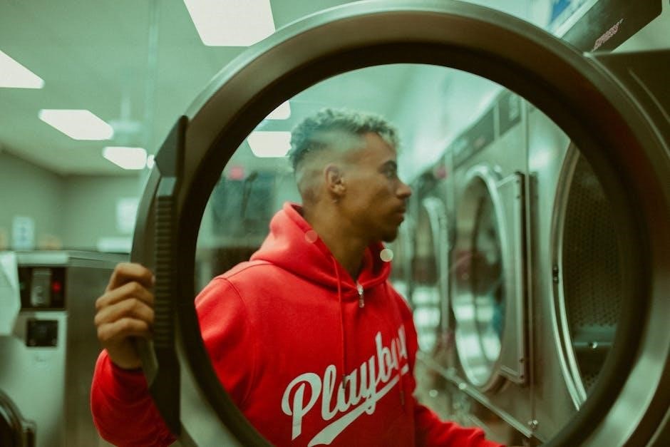 Drum cleaning should also be incorporated into your maintenance schedule. While self-cleaning cycles are available on some models‚ supplemental cleaning with a washing machine cleaner can help remove residue buildup. This prevents odors and ensures effective washing and drying. Inspect the door seal regularly for mold or mildew‚ cleaning with a damp cloth and mild detergent.